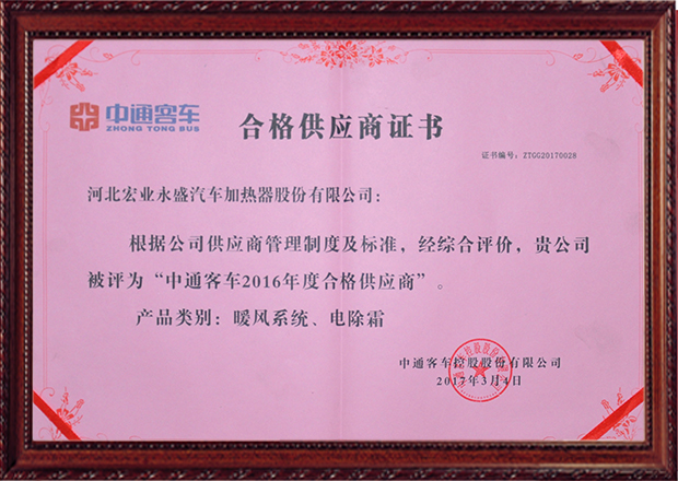 河北宏業永盛汽車加熱器股份有限公司,占地32萬平方米。目前,公司已擁有加熱器30多項發明專利和實用新型專利,形成了5大系列數十種型號、規格。產品包括:獨立式水冷、風冷、燃氣加熱器、電加熱器、尾氣加熱器、除霜器、散熱器、各種風機及控制系統,成為宇通客車、金龍客車、中通客車、北汽福田、比亞迪等汽車的主流供應商。公司通過了ISO9001:2015質量體系認證、 IATF16949質量管理體系認證、國軍標GJB9001B-2009認證、挪威船級社CE認證、出口產品Emark認證等。